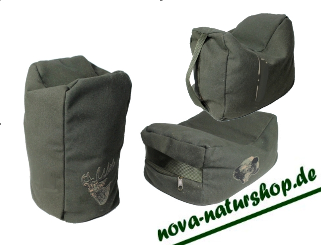 Der gesonderte und herausnehmbare Innensack kann mit beliebigem Füllgut wie Holzspäne, Reis, Heu o.ä.befüllt und somit die Härte der Waffenauflage bestimmt werden