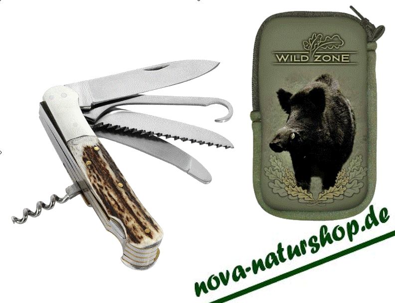Jagdmesser Hirschhorn mit Gürteltasche " Keiler "