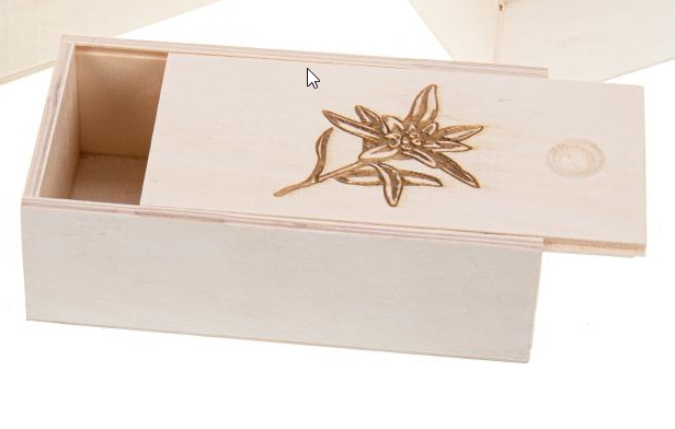 Schmuckkästchen, Holzkistchen mit eingraviertem Edelweiß