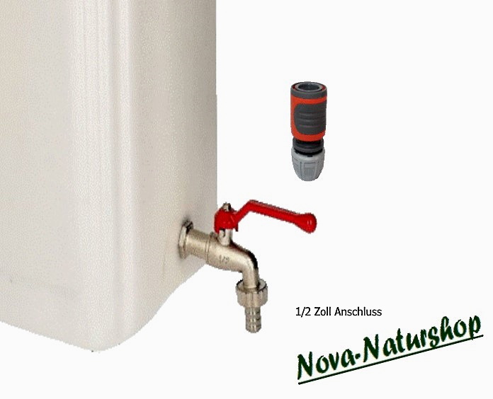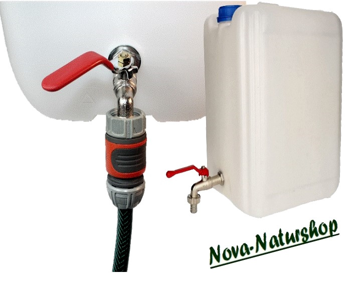 Durch die mitgelieferte Kupplung ermöglicht es den dichten Anschluss eines Gartenschlauch ½ Zoll, so dass der Wasserzulauf über größere Distanzen möglich wird (ideal für alle Reinigungsaufgaben wie für Wild- und Fischversorgung oder Dusche im Gelände).